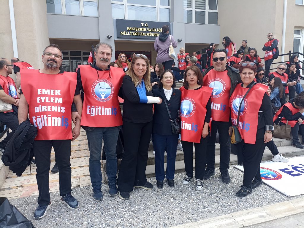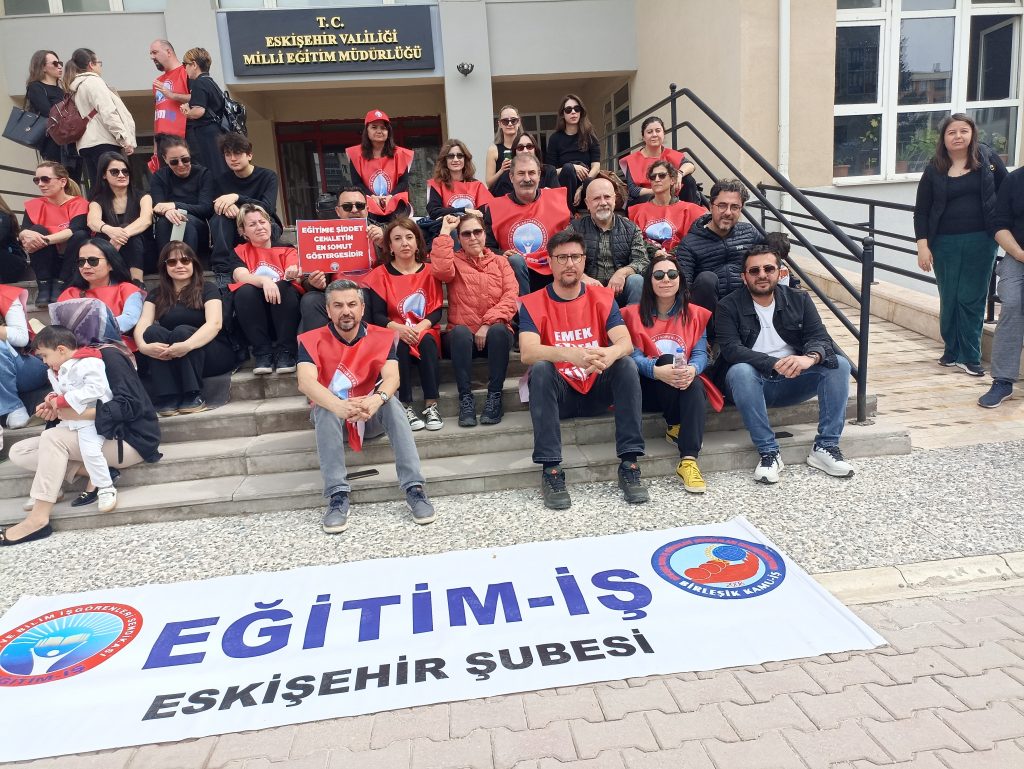 Eğitim İş Eskişehir olarak, Merkez Yürütme Kurulu tarafından alınan üç günlük iş bırakma eylemi kararının son gününde 17 Nisan 2026 Cuma günü çocuklarımızın, okullarımızın ve eğitim emekçilerinin güvenliği ve geleceği için oturma eylemi başlattık.